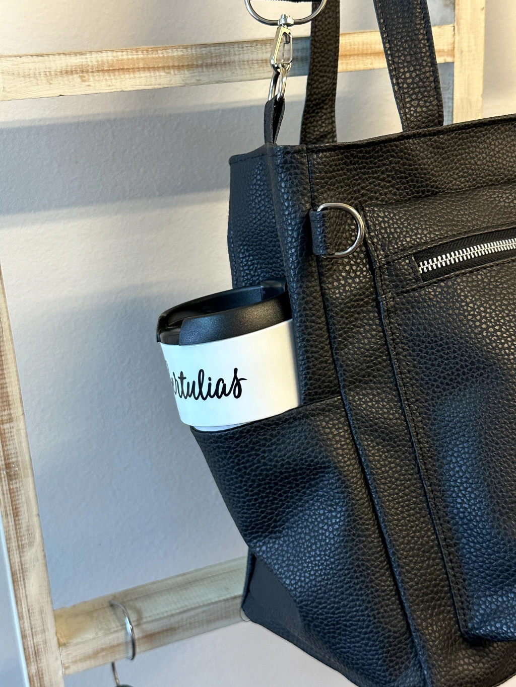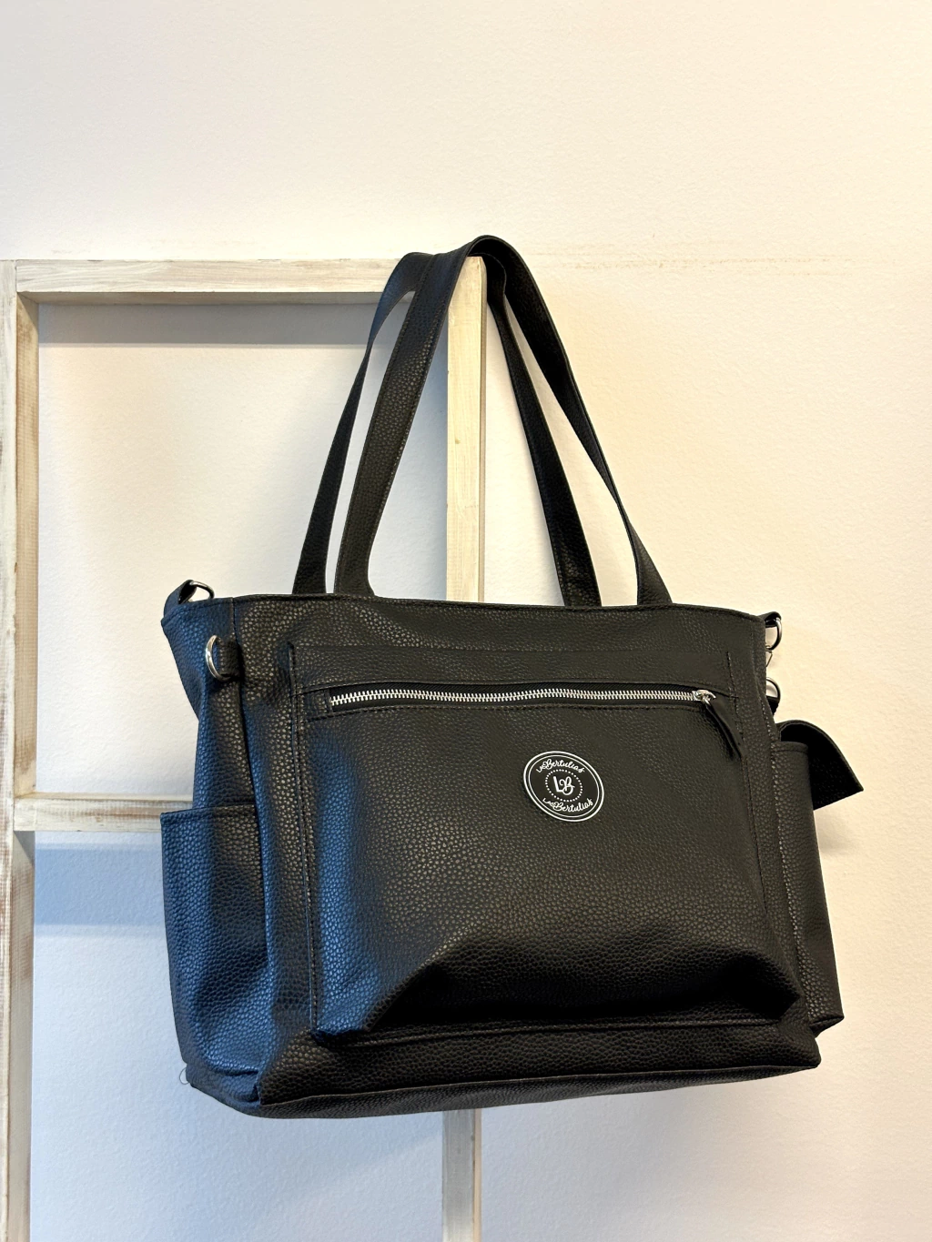 Por fuera cuenta con un bolsillo principal con cierre donde entra un cuaderno a5 y más! En sus laterales tiene bolsillos, uno con tapa y otro estilo solapa. Al frente también cuenta con un avio estilo medialuna para poder enganchar llaves, llaveros, etc.